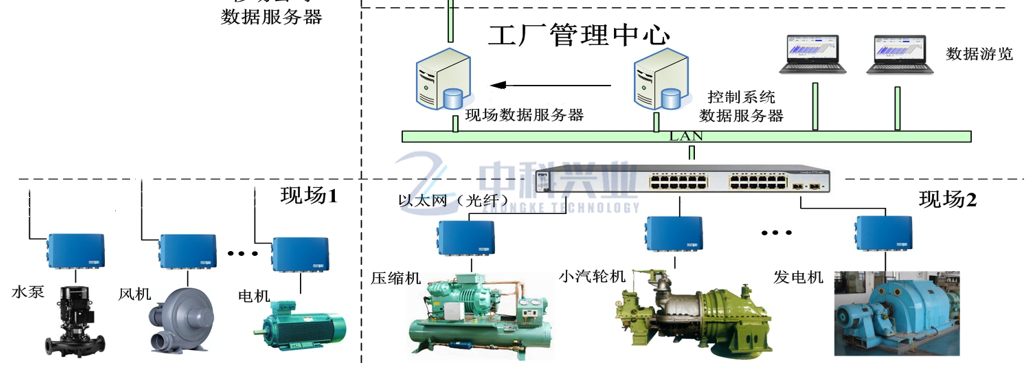 旋转机械(辅机)状态在线监测与故障分析系统实现了振动在线实时监测及数据远程分析诊断功能,基于现代数据通讯技术,整合工厂网络或移动网络资源,结合云服务器进行数据发布,不仅可以在工厂内部实时监测,振动专家也可以在异地通过互联网络对机组进行远距离监测、评估和故障诊断。